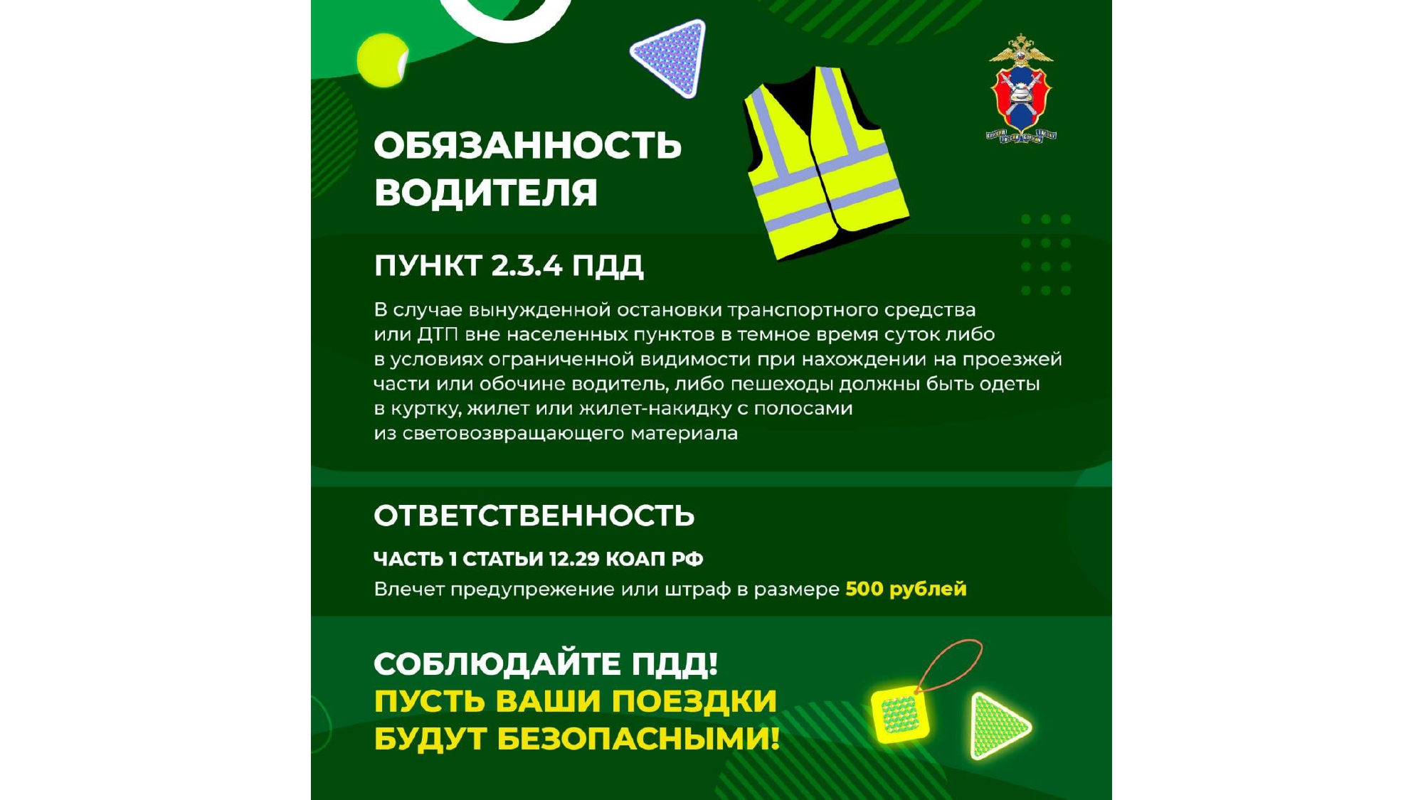 10. При движении по краю проезжей части дороги в темное время суток обозначь себя световозвращающим элементом (элементами).