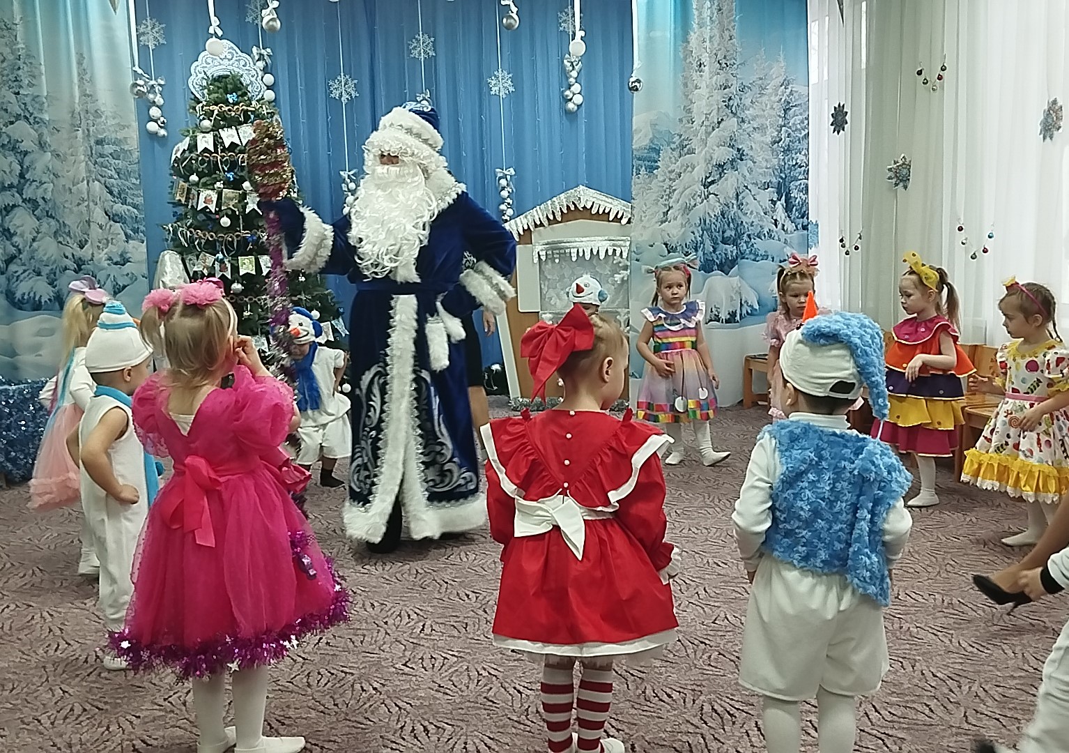 24 декабря 2025 года прошёл самый вкусный новогодний утренник во второй младшей группе под нежным названием «Сладкая сказка». Под звуки волшебной музыки дети в нарядных костюмах дружно крикнули: «Ёлочка, гори» и она засияла разноцветными огоньками. Карамелька в платье, украшенном конфетами, пригласила малышей в волшебное Королевство Сладостей. Конфетки-девочки и снеговики-зефирки-мальчики исполнили зажигательные танцы вместе с Дедом Морозом и Снегурочкой. Не обошлось без чудес - под волшебную музыку маленькая конфетка в руках Деда Мороза выросла и каждый ребёнок получил свой сладкий подарок.