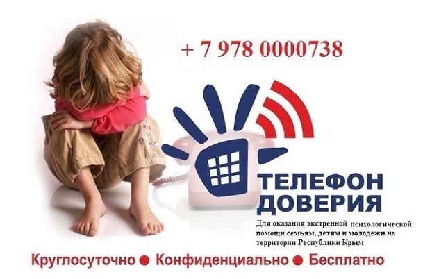 С 2015 года в Республике Крым работает круглосуточный детский «телефон доверия» с номером +7 978 0000 738.